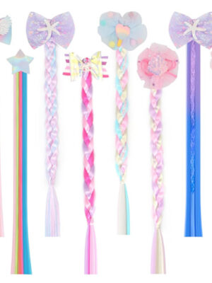 HQCM Hair Extensions for Kids, 8 PCS Rainbow Braiding Hair Tinsel Hair Accessories for Girls, Braids Hair Extension with Rubber Bands for Party Cosplay Performance